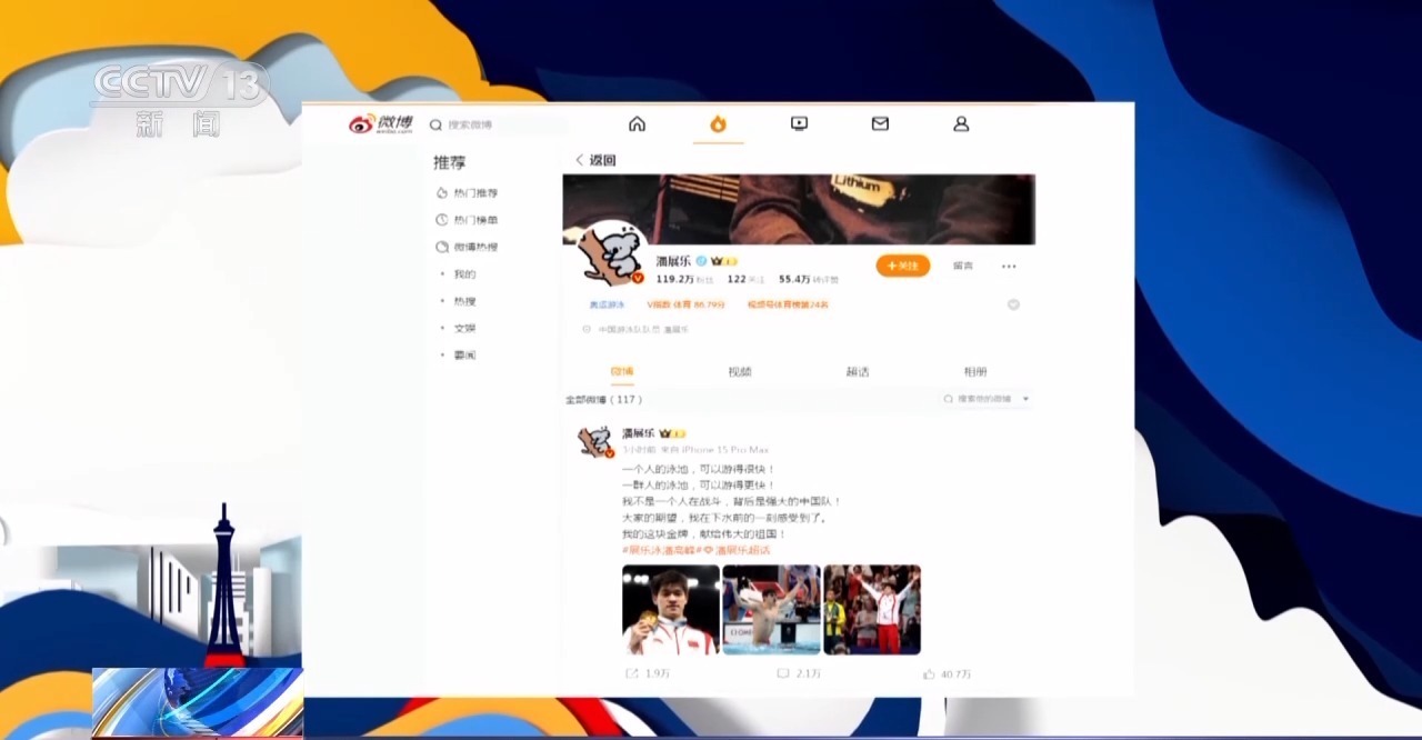 潘展乐在自己的微博里写下,我的这块金牌,献给伟大的祖国!